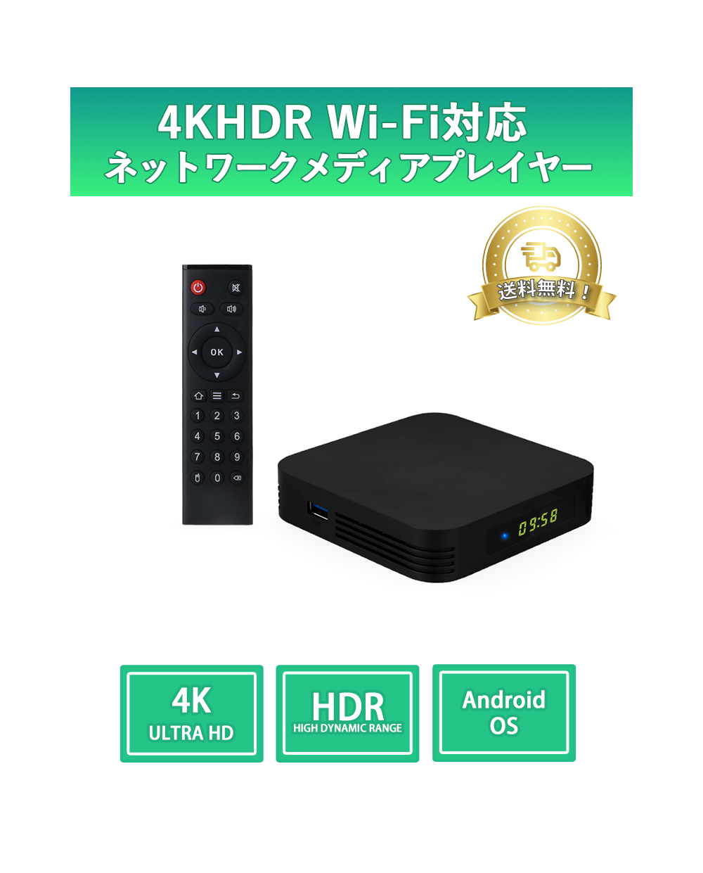 - メディアプレイヤー本体 - HDMIケーブル(HDMI1.4) - リモコン - 取扱説明書兼保証書 - 電源ACアダプター |